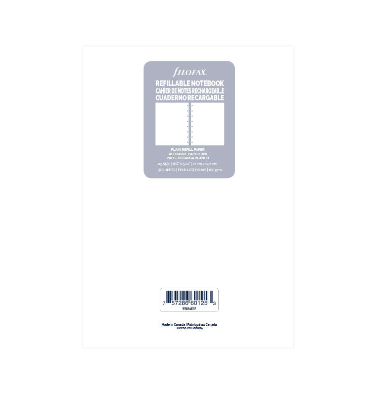 Please note: the Filofax Notebook Plain Paper Refill - A5 (152451) now features bright white paper, while the rest of the collection might have an off-white shade.
