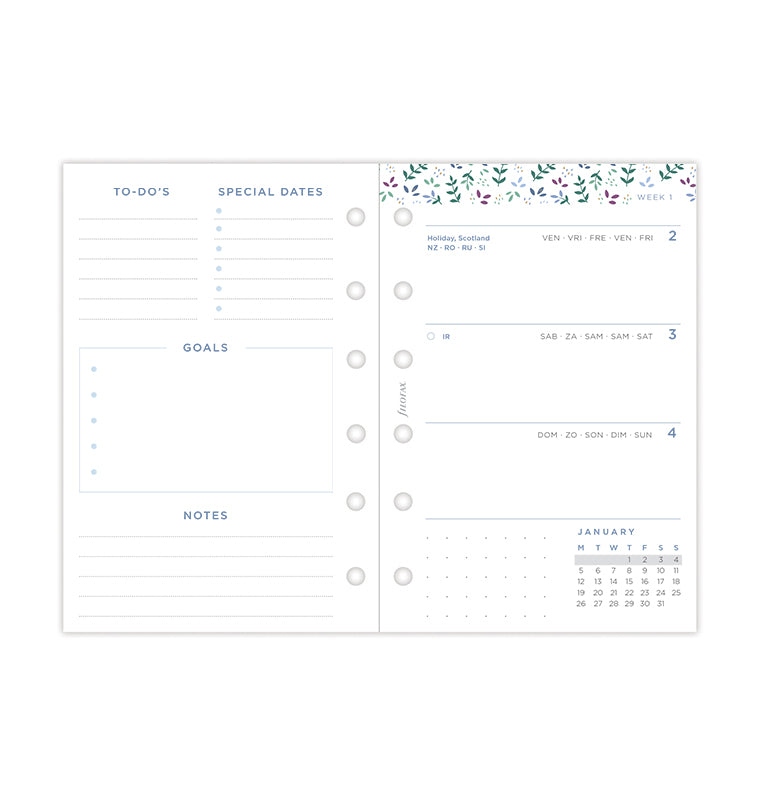 Plan ahead in our diary refill from the Garden Collection. This blooming floral Pocket refill offers a horizontal week to view layout with beautiful design accents for inspiring creativity and joy. Features a “Belongs to" page designed for adding a personal touch. Calendars of the current and next years are included to give you the chance to plan ahead, while the friendly dashboard pages invite the beginning of a new month. Discover the “Big Plans" section with dotted pages for monthly goals. At the end of the diary, you can also find dotted and ruled pages, perfect for your notes and doodles.